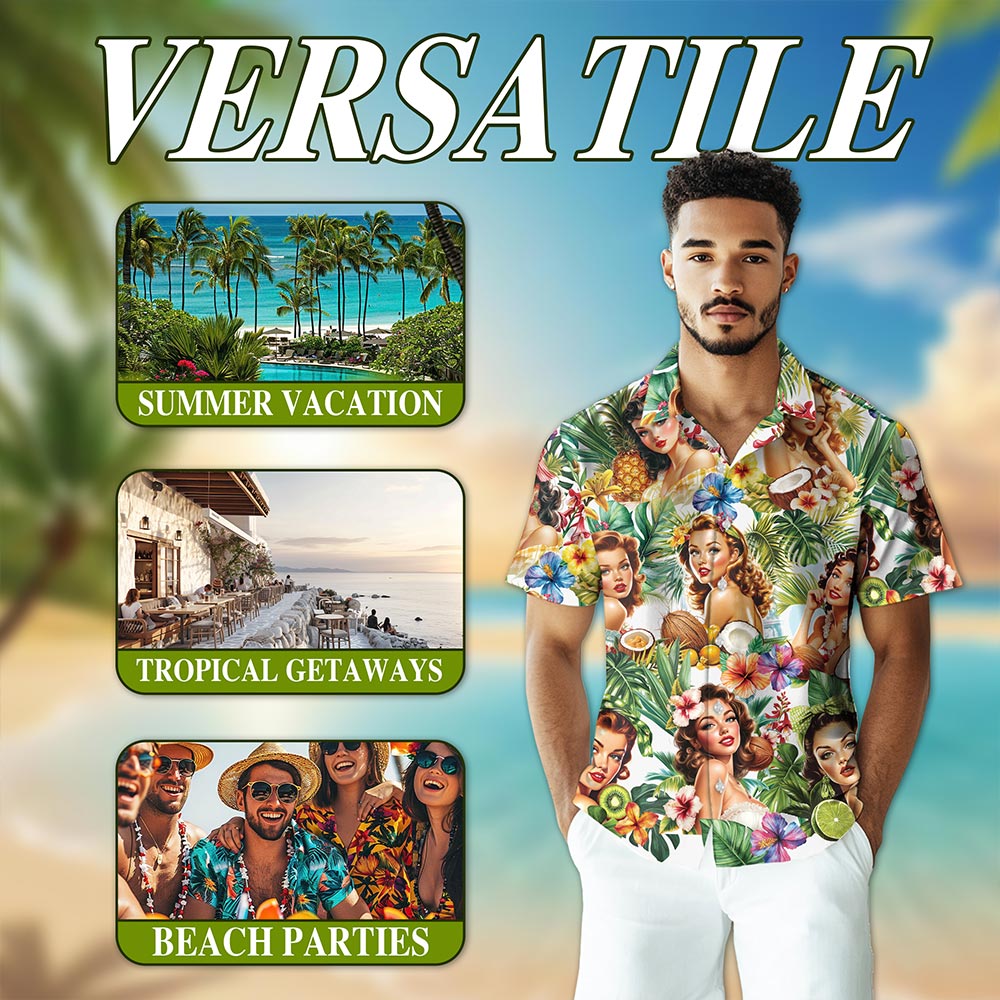 [VERSATILE STYLING OPTIONS]: This tropical shirt is perfect for any summer look. Pair it with shorts for a relaxed beach vibe or dress it up with chinos for a casual evening out. Its versatile design makes it easy to stand out in style. Complete your beachwear with sunglasses or a sun hat to create a special blend of vintage charm and modern flair.
