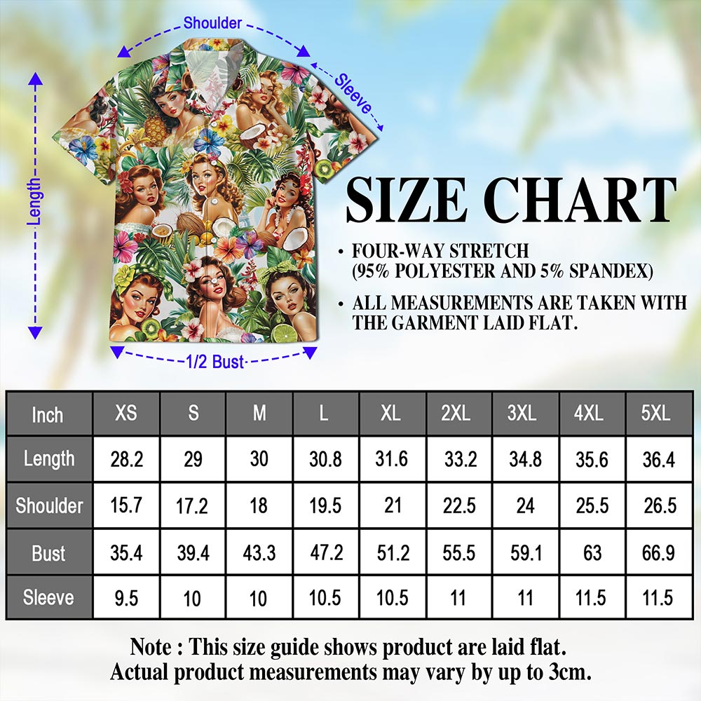 Netecom Tropical Pinup Girl Hawaiian Shirt for Men Women, Floral Button Down Summer Aloha Beach Short Sleeve Shirts, S-5XL
