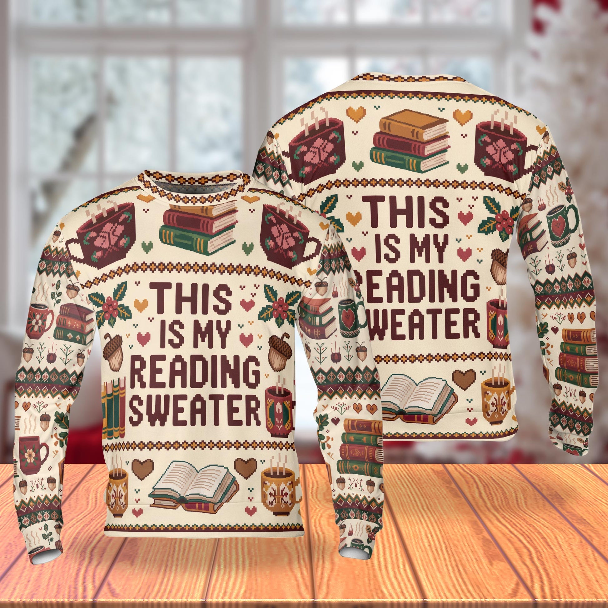 Netecom Ugly Christmas Book Coffee Sweatshirt 3D All Over Print – Unisex Crewneck Pullover, Lightweight Fleece Casual Outfit