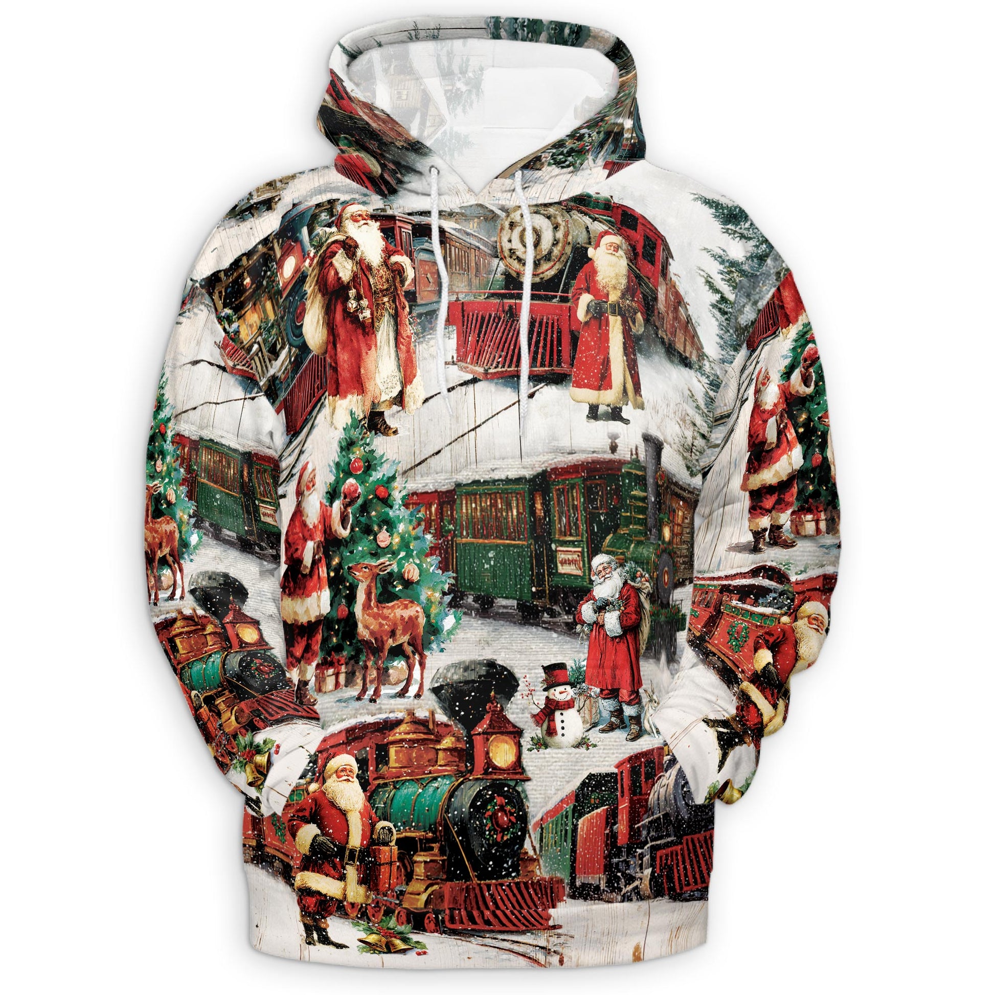 Netecom Vintage Christmas Train Print Hoodie with Front Pocket, All Over Old-Fashioned Graphic Sweatshirt Unisex Casual