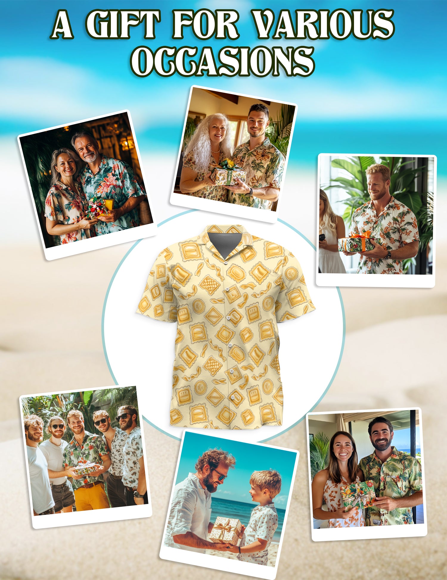 Netecom Vintage Italian Pasta Hawaiian Shirt for Men, Funny Foodie Pattern Aloha Button Down Short Sleeve Summer Shirt