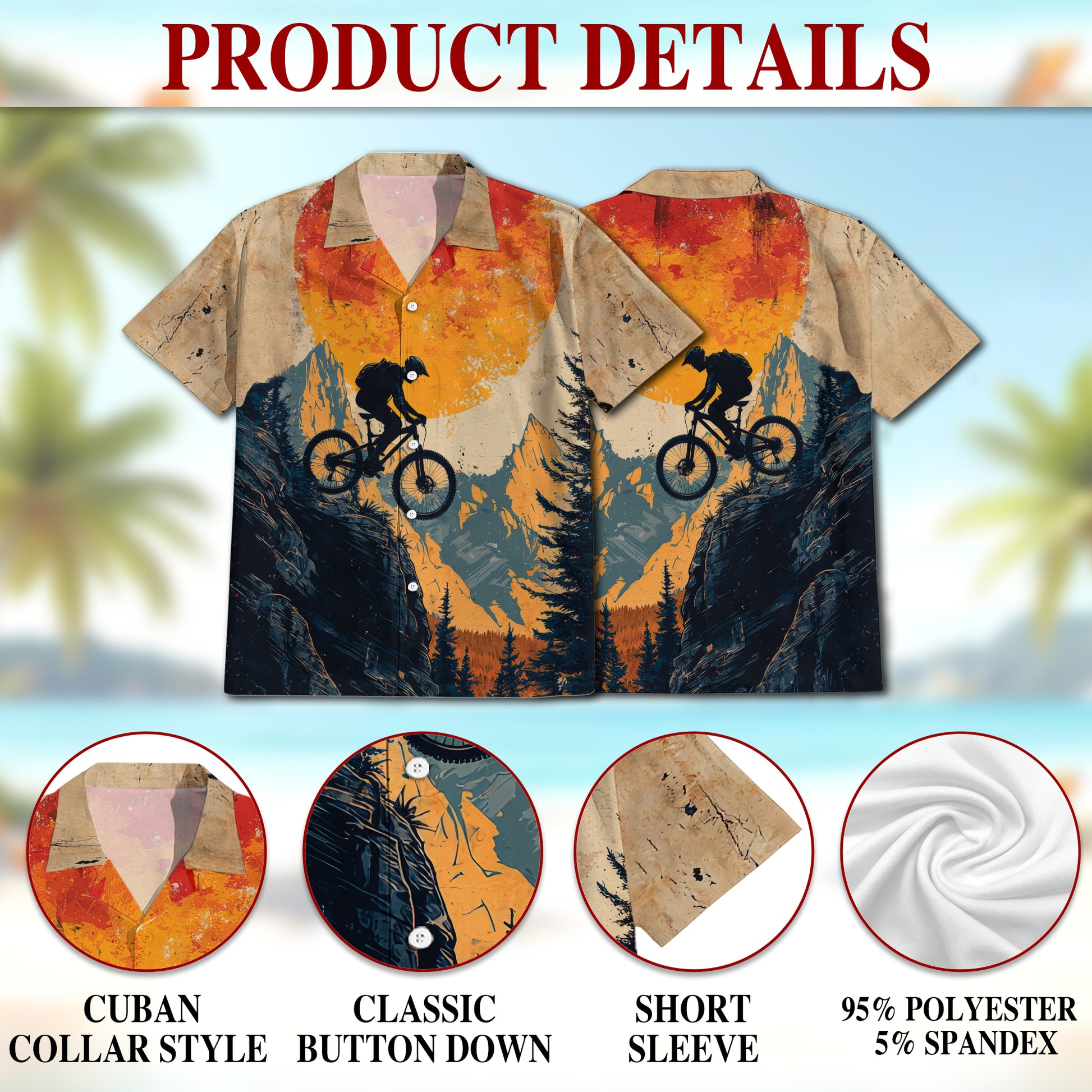 Netecom Vintage Mountain Biking Hawaiian Shirt for Men, Biker Gifts, Cycling Button Down Summer Beach Shirts