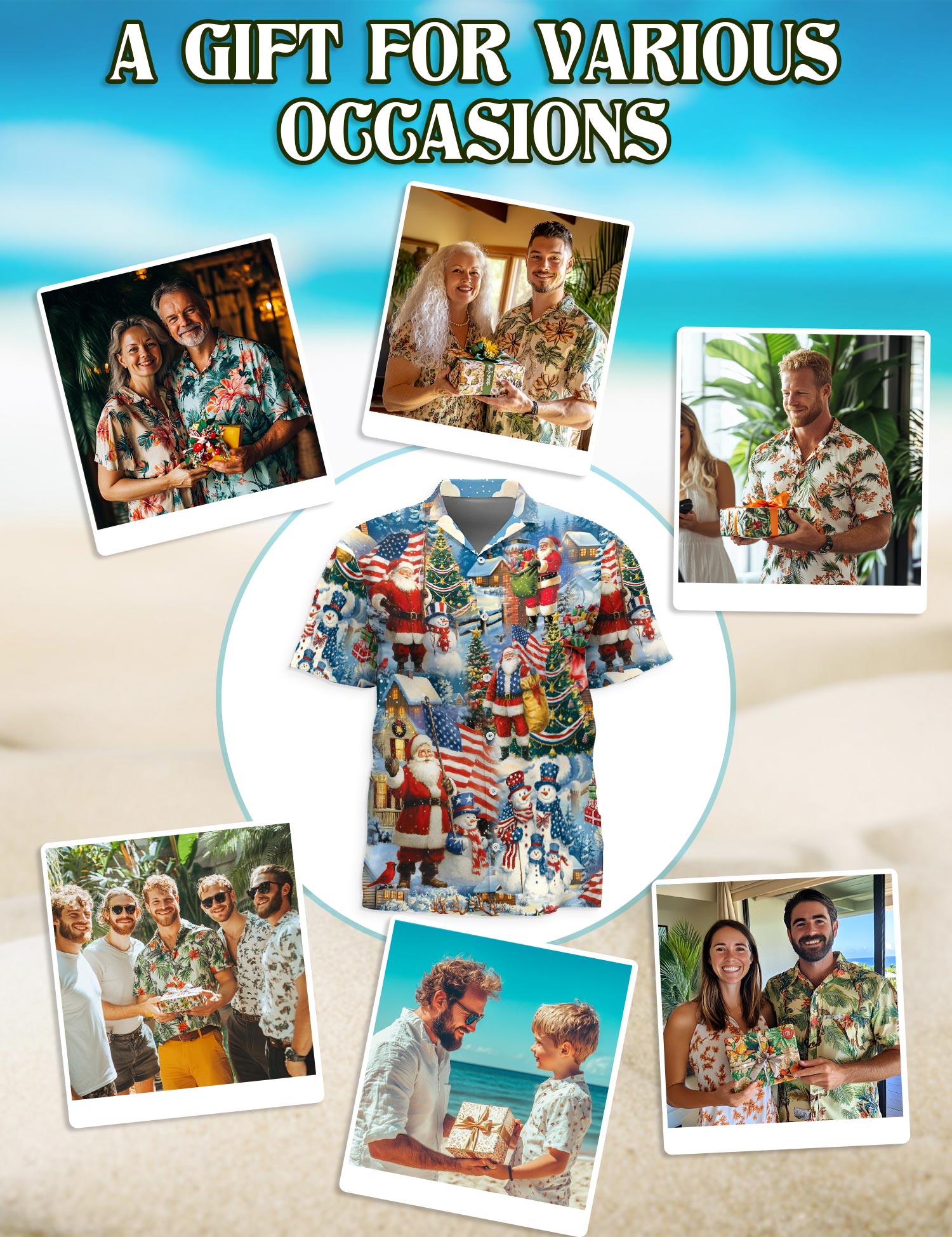 Netecom Vintage Santa Claus American Flag Christmas Hawaiian Shirt, Patriotic Holiday Print Button Down Shirt, S-5XL