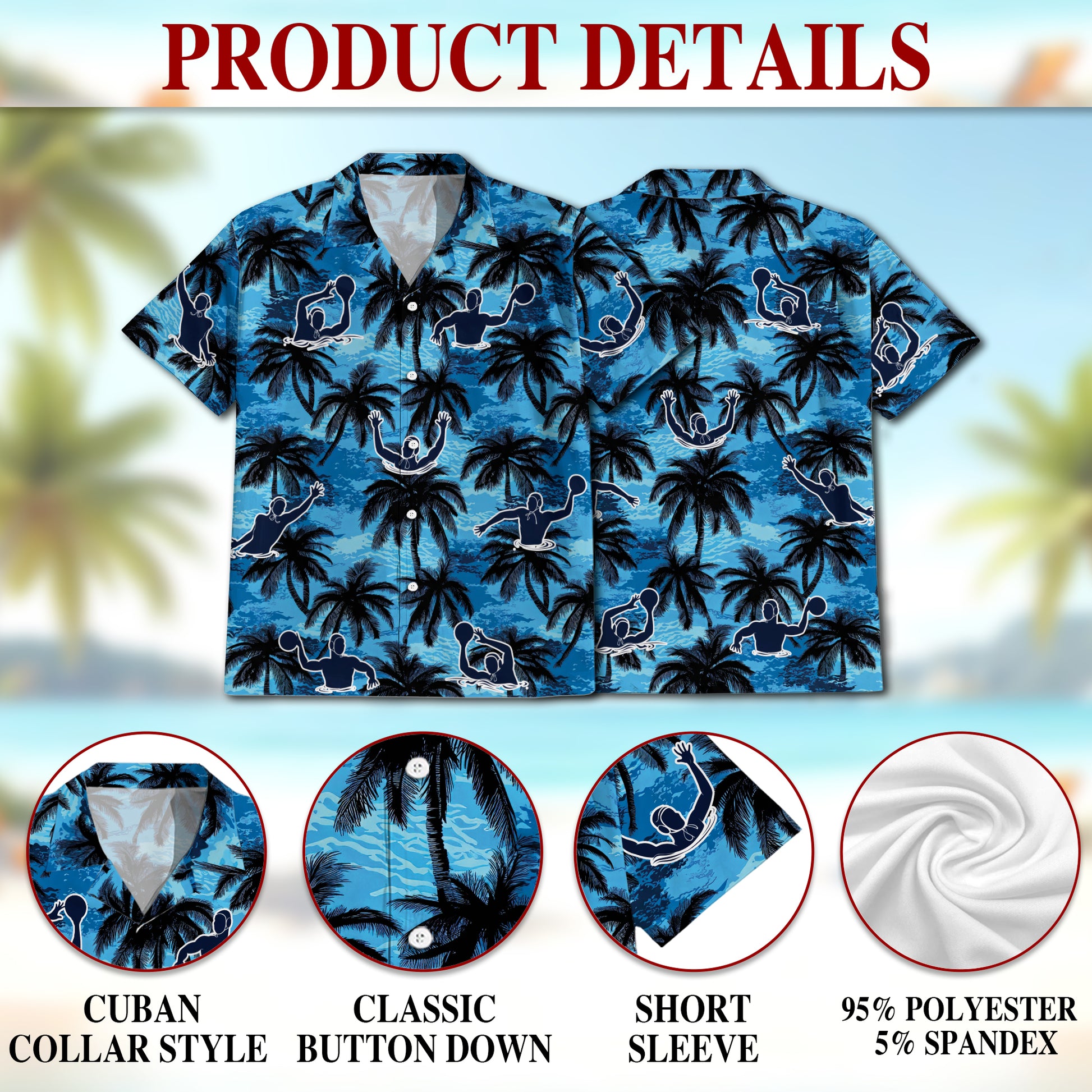 Netecom Water Polo Coconut Tree Hawaiian Shirt for Men Women, Tropical Button Down Summer Beach Short Sleeve Shirts