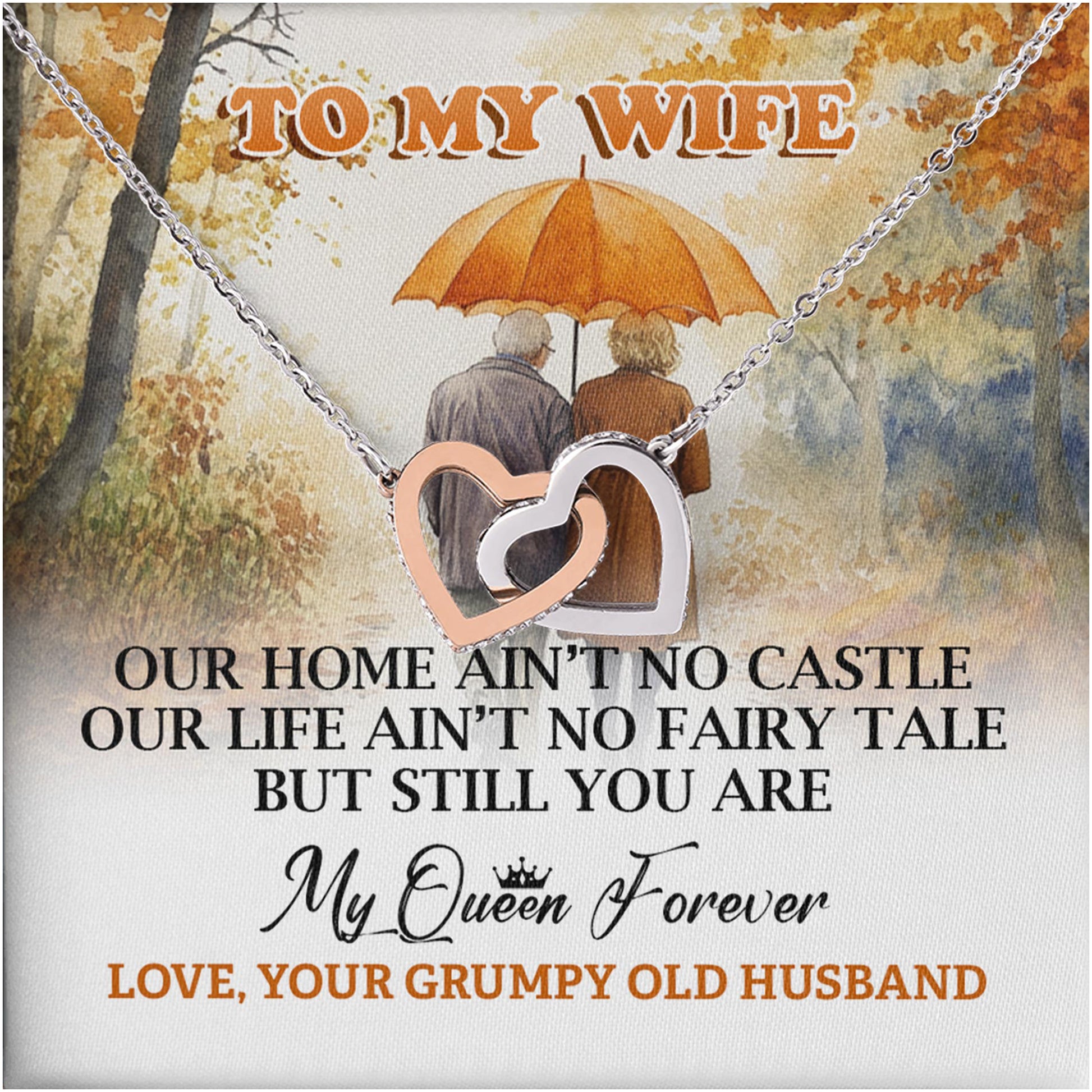 NetecomPersonalized Wife Necklace, Interlocking Heart Jewelry with Autumn Card, Romantic Gift from Husband for Anniversary or Special Occasion