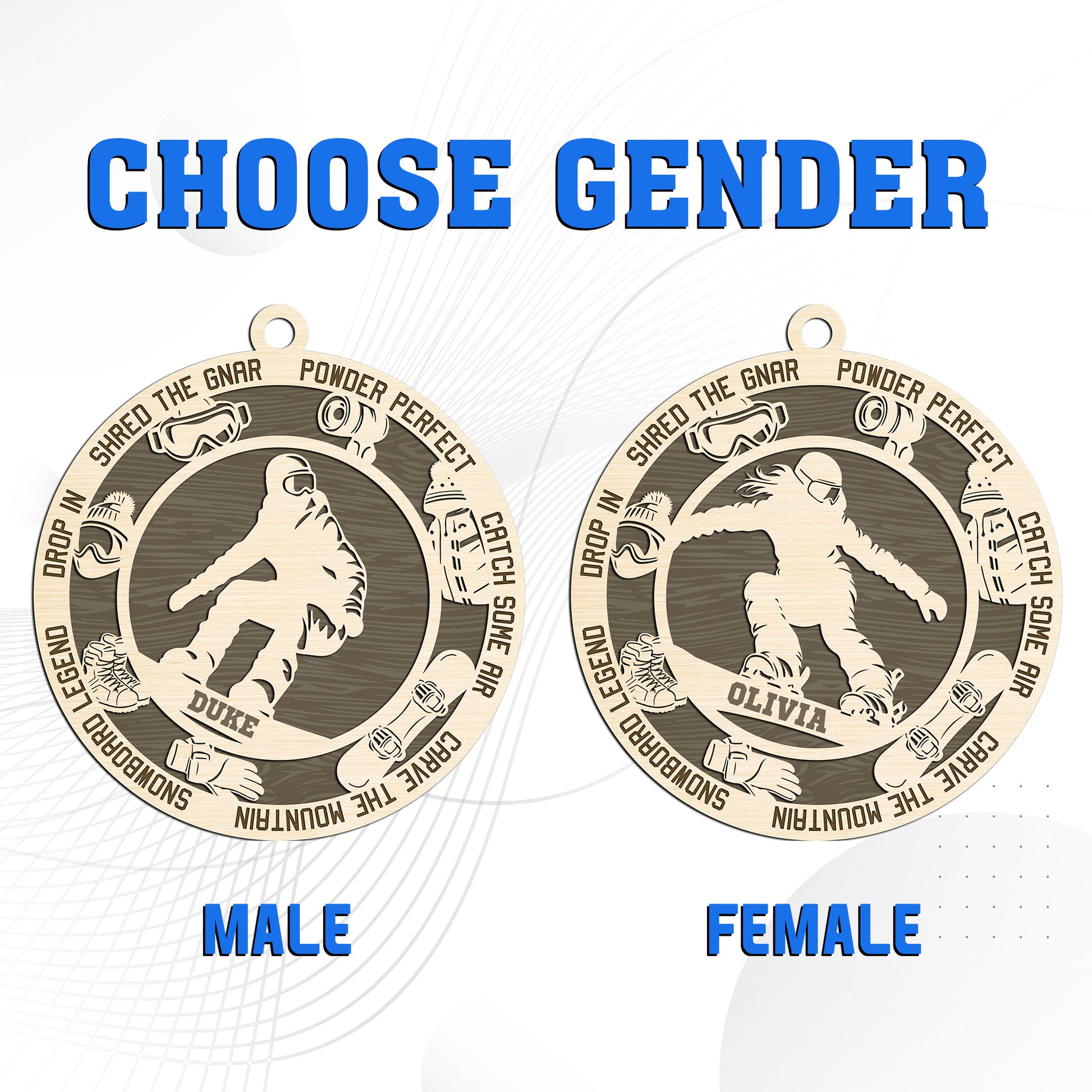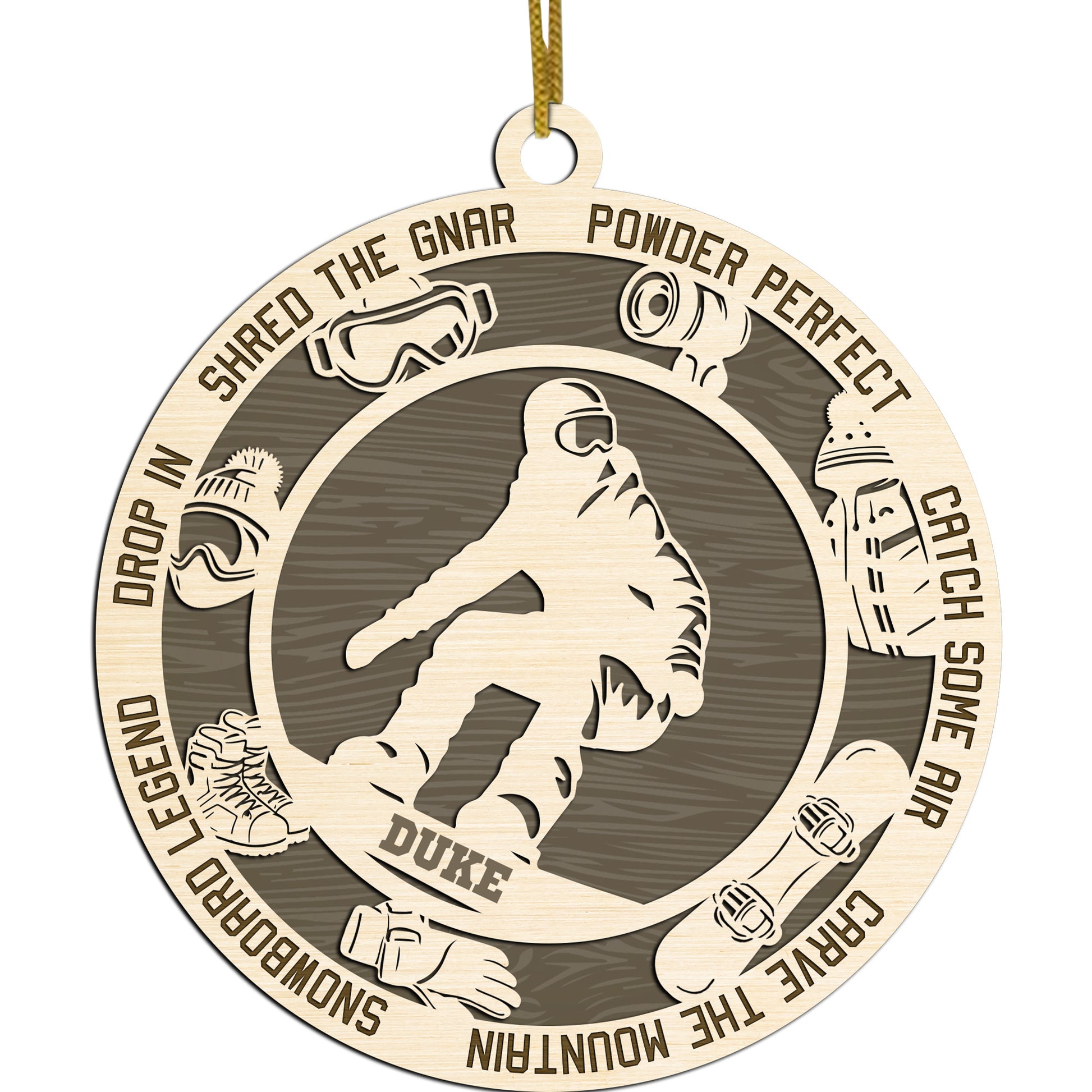 Personalized Snowboarder Ornament – Custom Wooden Snowboarding Decoration with Name & Snowboarding Terms