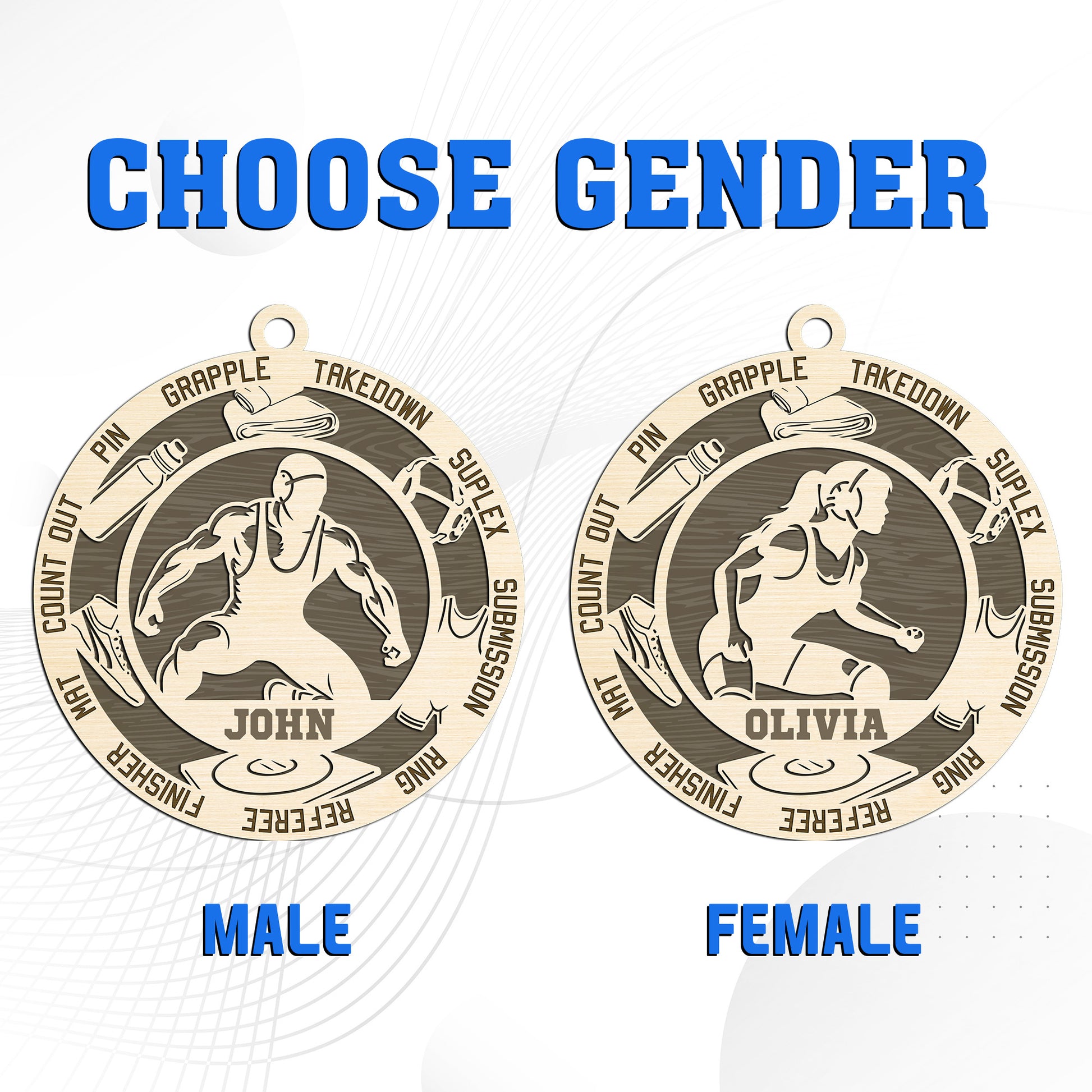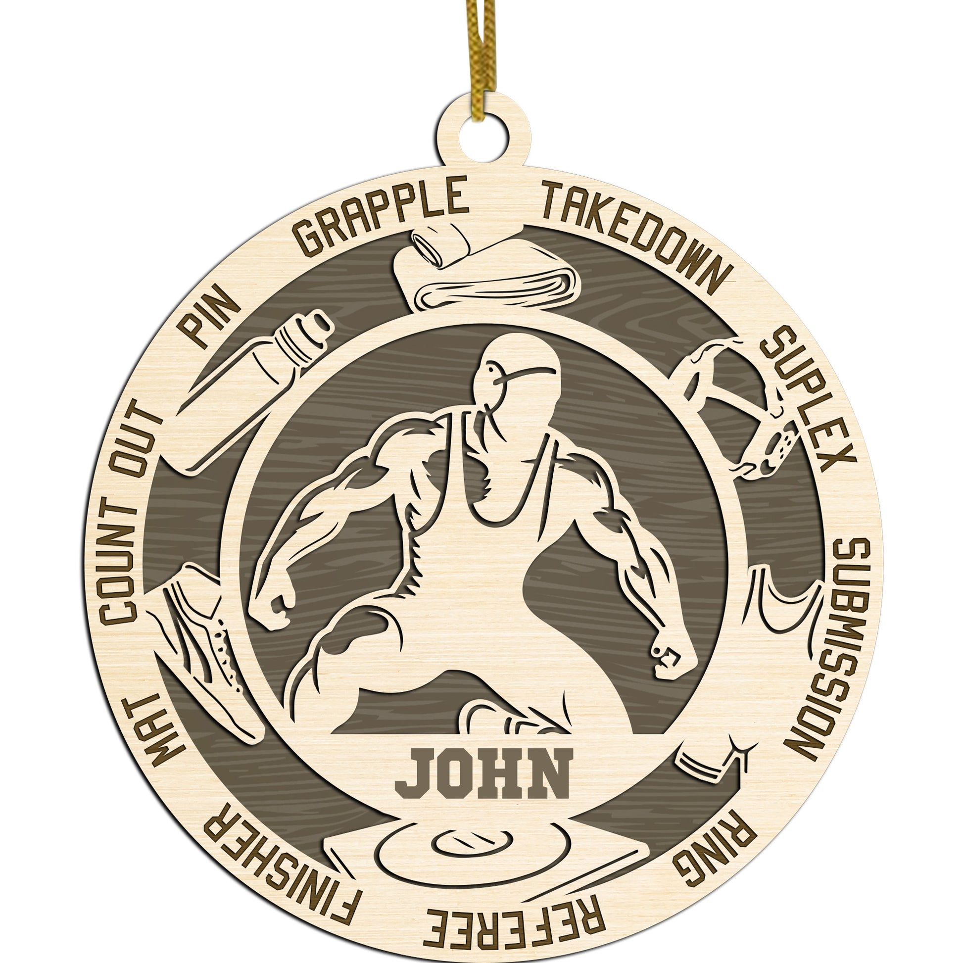 Personalized Wrestling Ornament – Custom Wooden Ornament with Wrestler Name & Wrestling Terms
